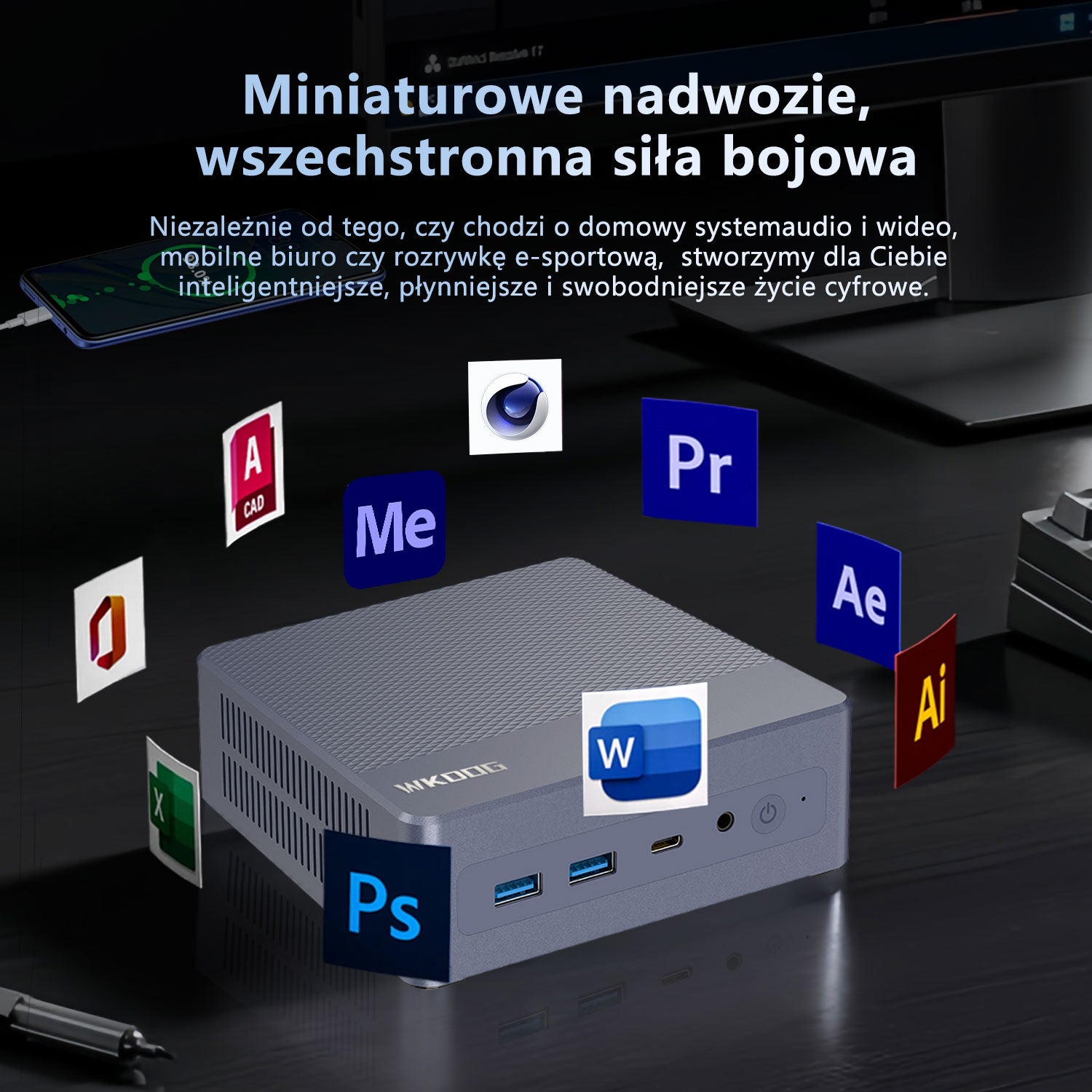 Der Mini K5 ist ein leistungsstarkes, kompaktes Computergerät für effiziente Büro-, Unterhaltungs- und Kreativanwendungen. Die Kernkonfiguration umfasst eine M.2 2280 SSD, die schnelles Lesen und Schreiben unterstützt, die Systemreaktionsgeschwindigkeit und Dateiübertragungseffizienz deutlich verbessert und das Booten des Systems, das Laden von Software und die Verarbeitung großer Dateien problemlos bewältigt. Der Mini K5 ist mit einem leistungsstarken Prozessor und einer integrierten Grafikkarte ausgestattet, unterstützt Multitasking und eine flüssige Grafikdarstellung und erfüllt damit die Anforderungen des täglichen Büros, der audiovisuellen Unterhaltung und der Lichtgestaltung.